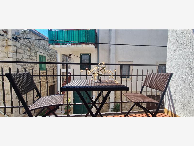 Situated on the first floor, it is composed of: Two bedrooms (one with double bed and one smaller with single bed), bathroom, kitchen and dining room, balcony.