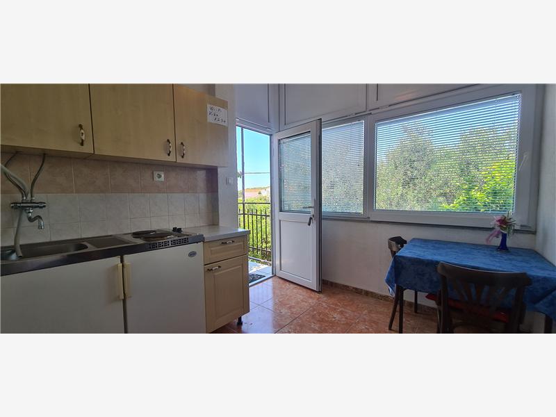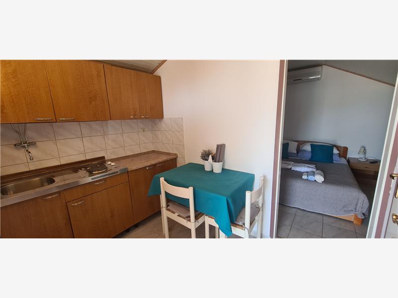 – Bedroom with one double and one single bed (+ it is possible to place one more single bed), bathroom, kitchen with dining area, loggia – balcony.
