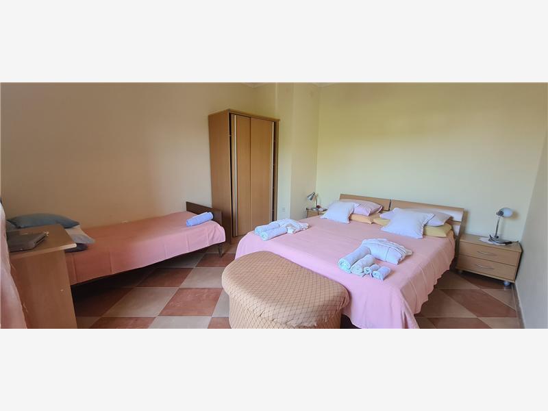 – Two bedrooms, both with double beds (bigger one has also one single bed), two bathrooms, kitchen with living room (+ sofa). There is capacity for max, 6 persons.