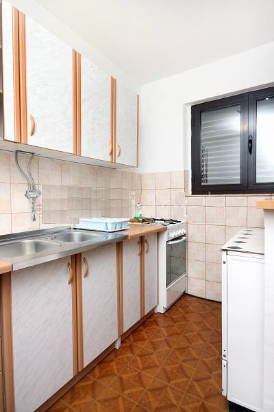 Smješten na prvom katu, sastoji se od dvije spavaće sobe (jedna sa bračnim krevetom + mala jednokrevetna soba), kupaona, kuhinja sa blagovaonicom, balkon.