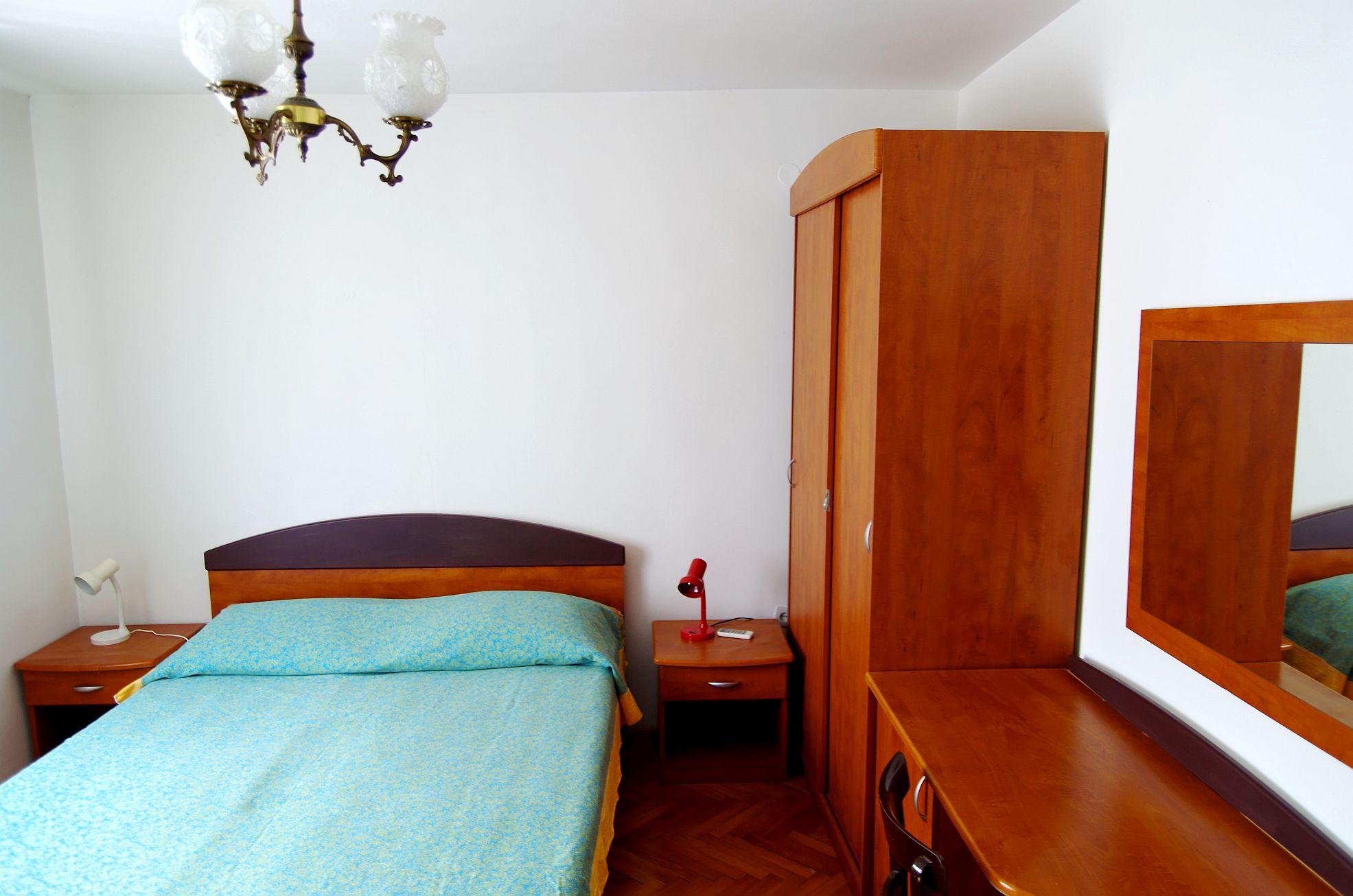 – spavaća soba sa 3 kreveta (bračni + 1 za jednu osobu, moguće je staviti i još 1 dodatni pomoćni krevet), kupaona, kuhinja sa blagovaonicom, balkon.
